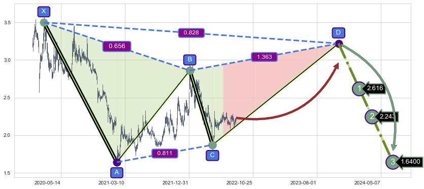 ➣ 未完成【伽利】形态起点X: 2020-02-25, 已到达C点: 2022-04-26, 预测最终D点: 2023-11-03, 共881交易日