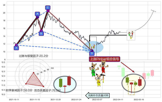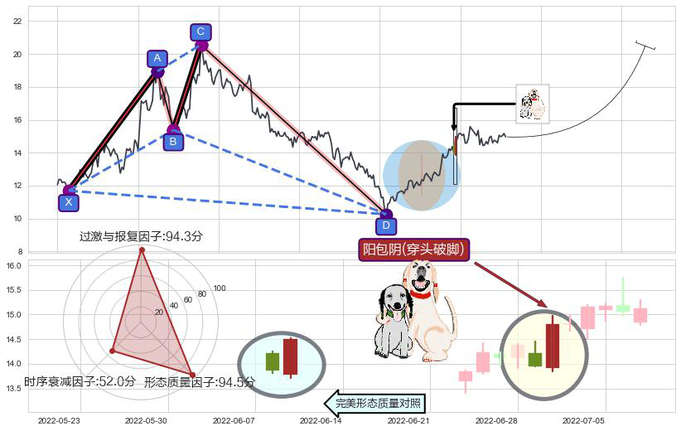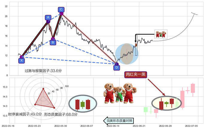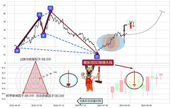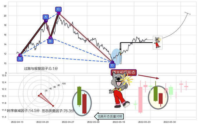 ➢ 曙光初现形态 🔜 谐波鲨鱼d拐点上涨支撑 综合量化分数:51.35 【中性】