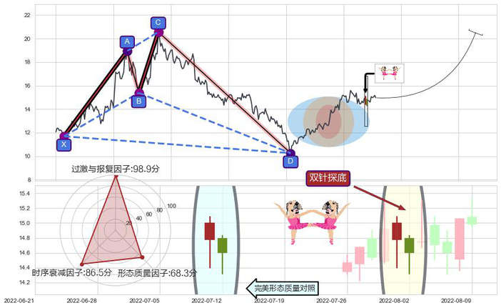 ➢ 🕰 价格走势在2022-08-01至2022-08-02期间形成双针探底,残存影响值:6.01