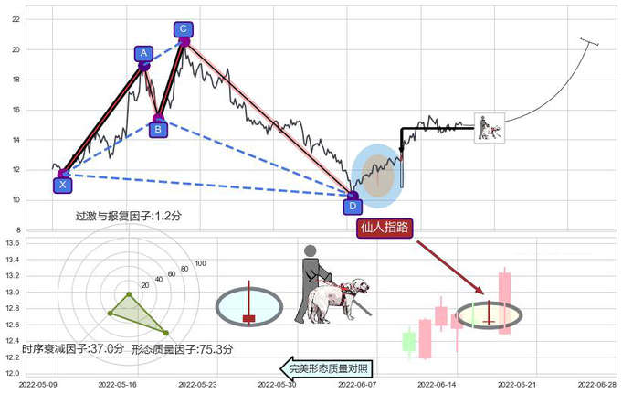 ➢ 仙人指路 🔜 谐波鲨鱼d拐点上涨支撑 综合量化分数:52.76 【中性】