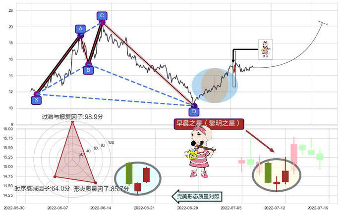 ➢ 早晨之星(黎明之星) 🔜 谐波鲨鱼d拐点上涨支撑 综合量化分数:57.09 【偏多】