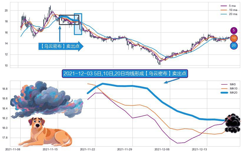 ⚀ 2021-11-19日-2021-12-16日显现 5日-10日-20日均线 【乌云密布】卖出点 看空信号,后市看跌,卖出