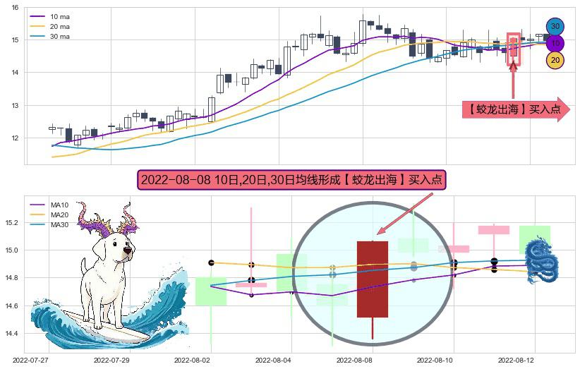 ⚀ 2022-08-08日显现 10日-20日-30日均线 【蛟龙出海】买入点 看多信号,后市看涨,买入