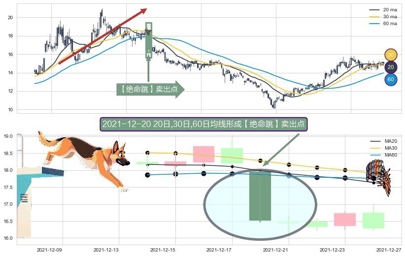 ⚀ 2021-12-20日显现 20日-30日-60日均线 【绝命跳】卖出点 看空信号,后市看跌,卖出