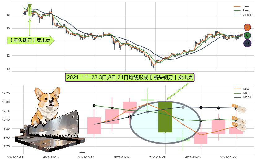 ⚀ 2021-11-23日显现 3日-8日-21日均线 【断头铡刀】卖出点 看空信号,后市看跌,卖出
