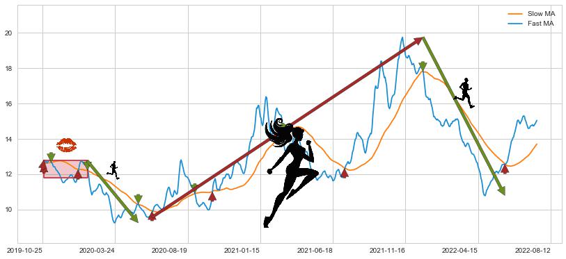 2021-12-20至2022-06-13 慢线与快线呈空头排列, 慢线与快线接触少,无缠绕