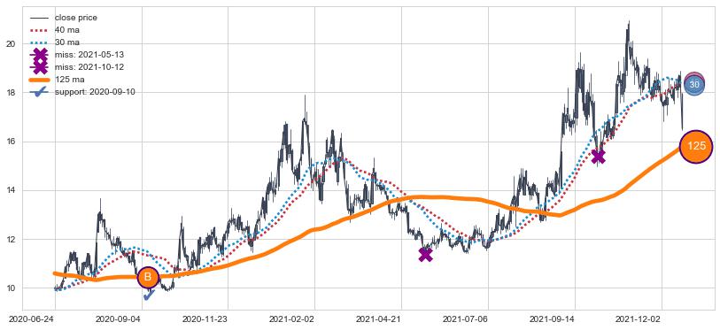 ⚅ 买点向上突破均线后,价格走势很纠结,不断在均线周围试探,有再次下探破位均线的可能