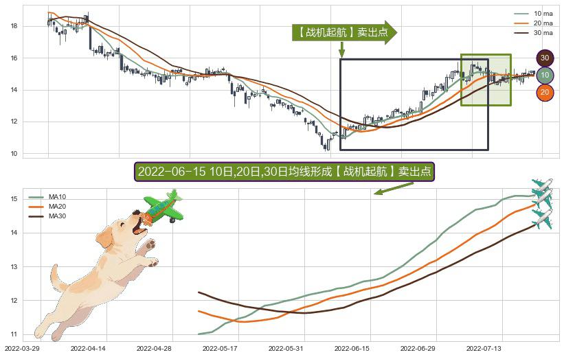 ⚀ 2022-05-09日-2022-07-20日显现 10日-20日-30日均线 【战机起航】卖出点 看空信号,后市看跌,卖出