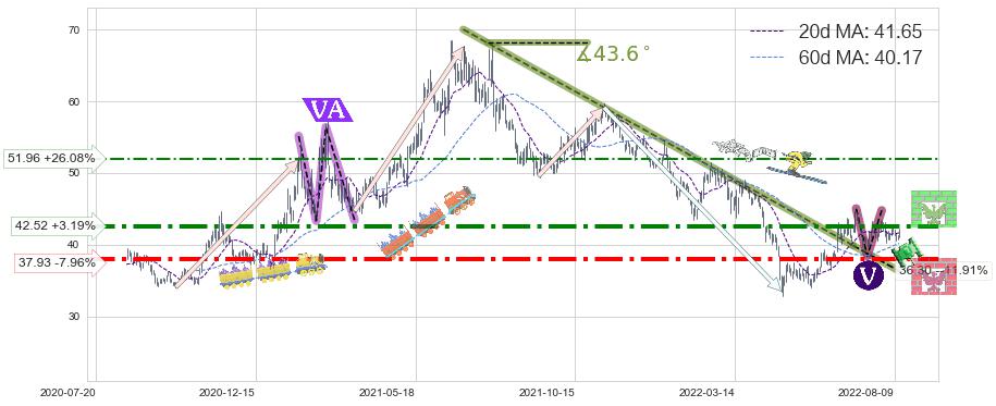 ♘ 阻力价格位42.52,可信任强度81.85%,距离最后交易2022-08-12形成的收盘价格41.21相差 +3.19%