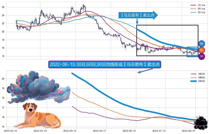 ⚀ 2022-04-11日-2022-08-12日显现 30日-60日-90日均线 【乌云密布】卖出点 看空信号,后市看跌,卖出