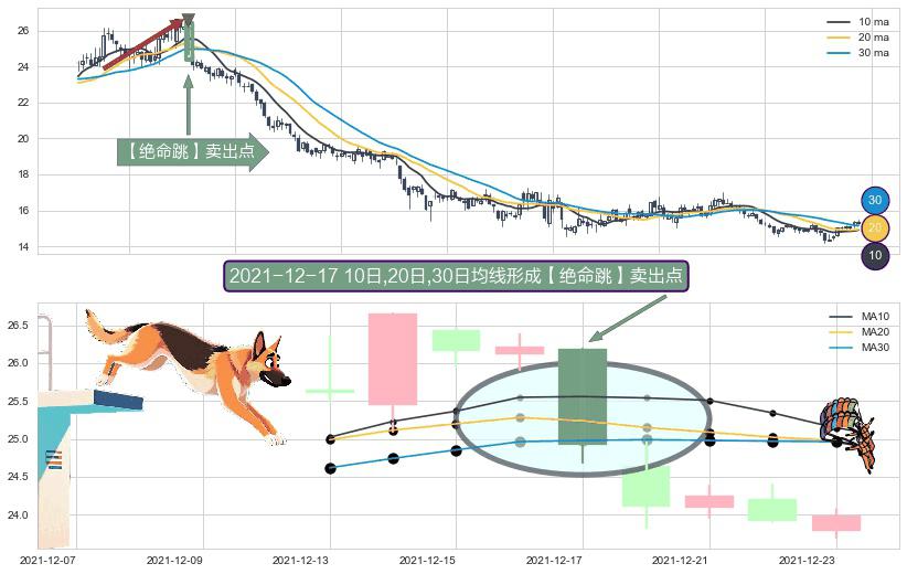 ⚀ 2021-12-17日显现 10日-20日-30日均线 【绝命跳】卖出点 看空信号,后市看跌,卖出
