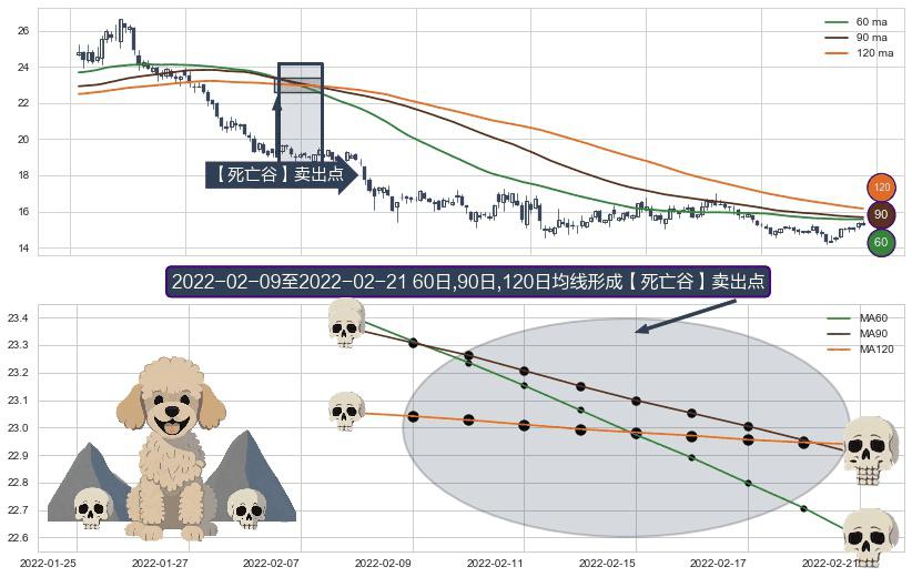 ⚀ 2022-02-10-日至2022-02-21-日显现 60日-90日-120日均线 【死亡谷】卖出点 看空信号,后市看跌,卖出
