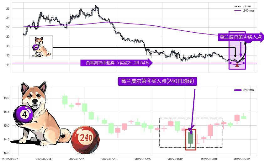 ⚀ 2022-08-02-日显现 葛兰威尔均线 240日均线 第④买入点 下降趋势均值回复的短线反弹信号,后市看涨,买进信号