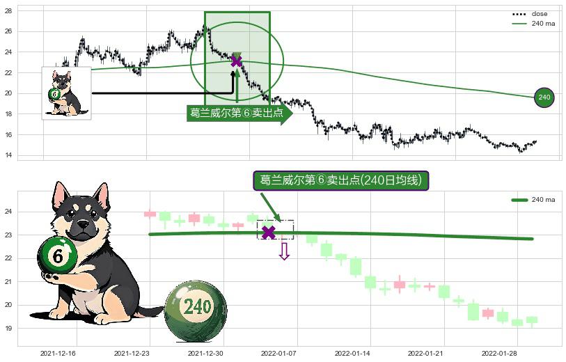 ⚀ 2022-01-06-日显现 葛兰威尔均线 240日均线 第⑥卖出点 走势反转见顶信号,后市看跌,卖出信号