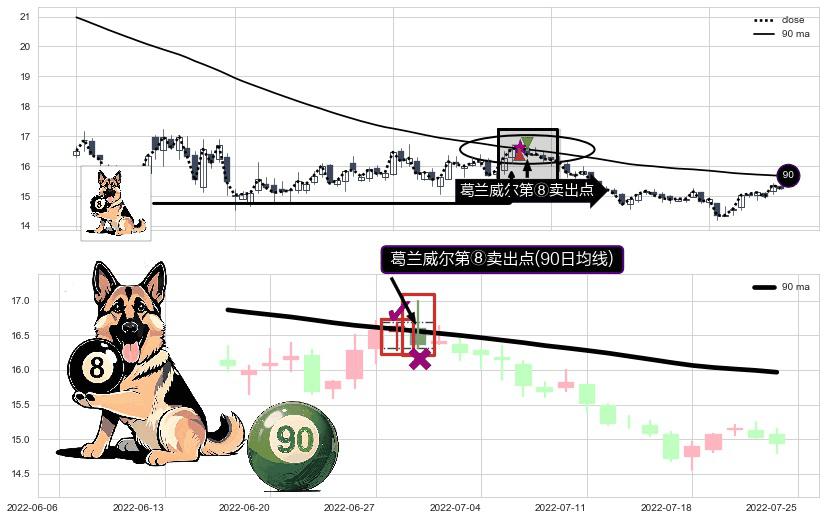 ⚀ 2022-06-29-日显现 葛兰威尔均线 90日均线 第⑧卖出点 下降趋势的中继信号,后市看跌,卖出信号