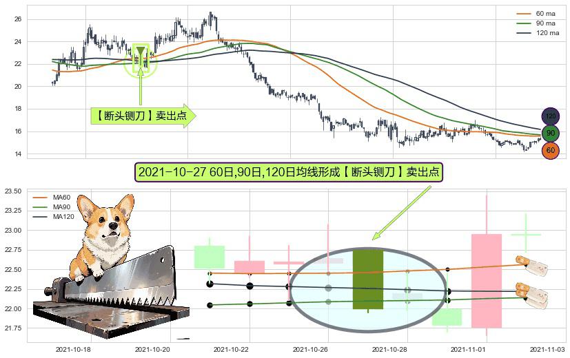 ⚀ 2021-10-27日显现 60日-90日-120日均线 【断头铡刀】卖出点 看空信号,后市看跌,卖出