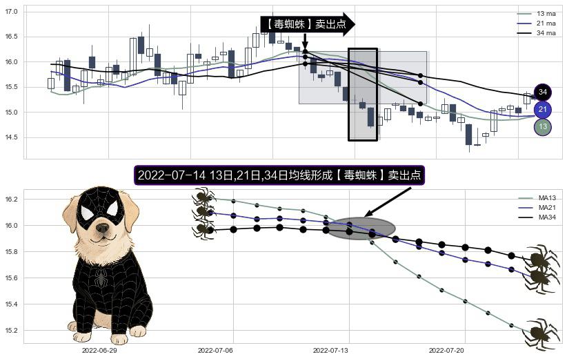 ⚀ 2022-07-14日显现 13日-21日-34日均线 【毒蜘蛛】卖出点 看空信号,后市看跌,卖出