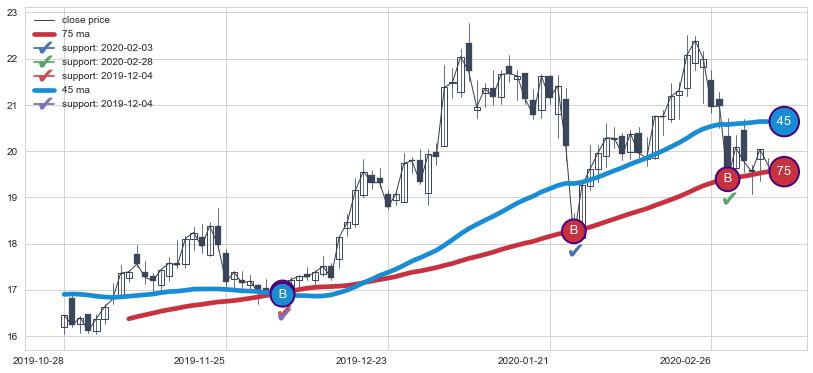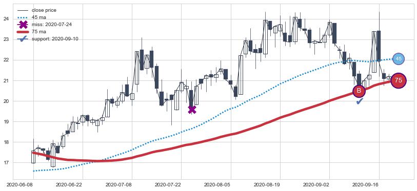 ⚃ 在破位点附近ma依然上升趋势比较明显,平稳迹象是在突破后一段时间后出现,信号【可信度低】