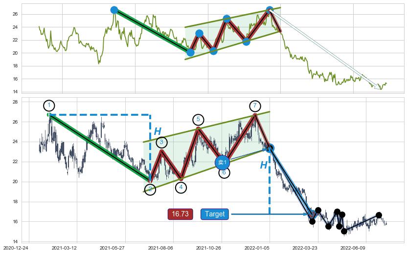 ➣ 最小中继整理跌幅→𝐇: 6.62 (𝐇旗杆的长度:旗杆起点→顶点)