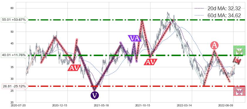 ♘ 阻力价格位40.01,可信任强度95.55%,距离最后交易2022-08-12形成的收盘价格35.80相差 +11.76%