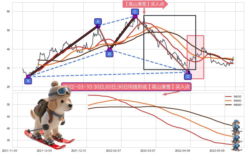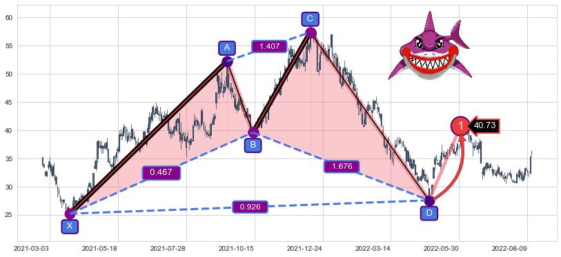 ➣ 已完成【鲨鱼】形态起点X: 2021-03-24, 终点D: 2022-04-25, 共264交易日