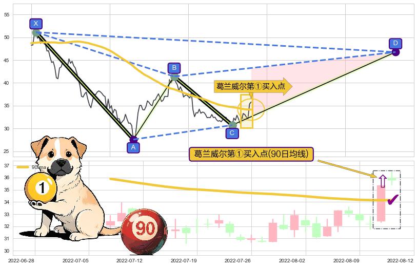 ➣ D点拟合预测价格46.76,距离最后交易收盘价格35.80相差 +30.63%