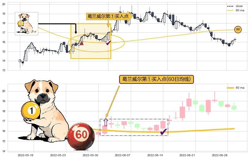 ⚀ 2022-05-31-日显现 葛兰威尔均线 60日均线 第买①入点 走势反转见底信号,后市看涨,买进信号