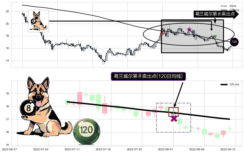 ⚀ 2022-08-01-日显现 葛兰威尔均线 120日均线 第⑧卖出点 下降趋势的中继信号,后市看跌,卖出信号
