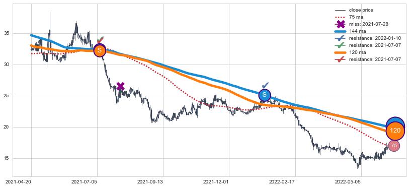 ⚂ 2022-06-20-日均线向上突破,2022-08-01-日重新下穿均线破位,均线阻力再次生效