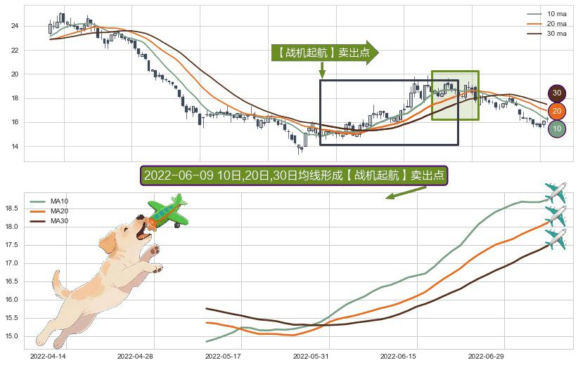 ⚀ 2022-05-11日-2022-07-06日显现 10日-20日-30日均线 【战机起航】卖出点 看空信号,后市看跌,卖出