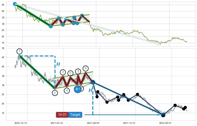 ➣ AI预测: 假定反转启动后, 第❸目标位置(2023-04-12, 13.74)