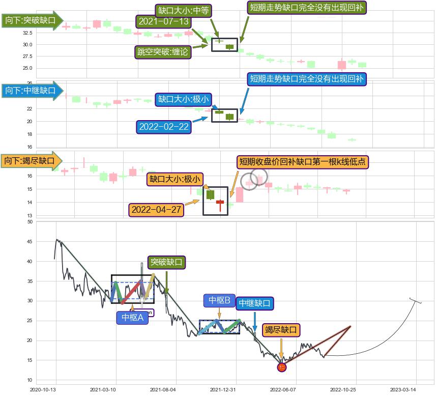 ➢ 2022-04-27形成:向下跳空【竭尽】缺口