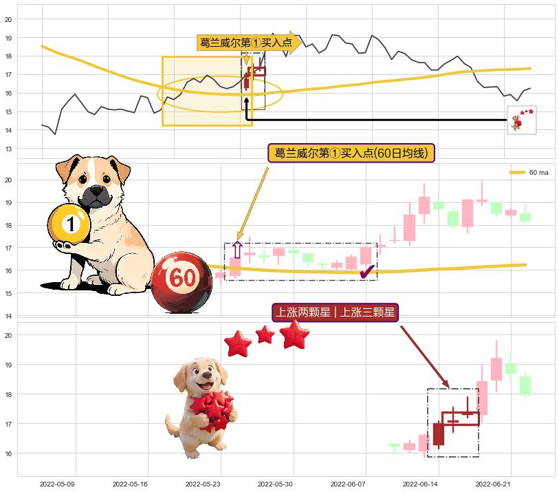 | 2 🅚:早晨之星(黎明之星) ➕ 🎢:葛兰威尔第①买入点买入点信号形成后,猜想后续下跌趋势反转上涨趋势(均值回复) ☞ 看多信号 ⇥ 【均线】交织【🅚线】⇥ 综合量化分数: 53 | > |