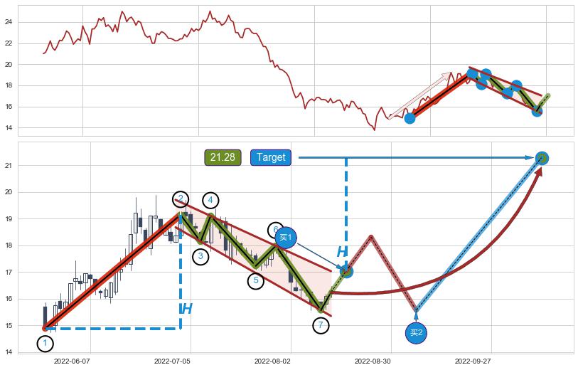 ➣ 最小中继整理涨幅→𝐇: 4.25 (𝐇旗杆的长度:旗杆起点→顶点)