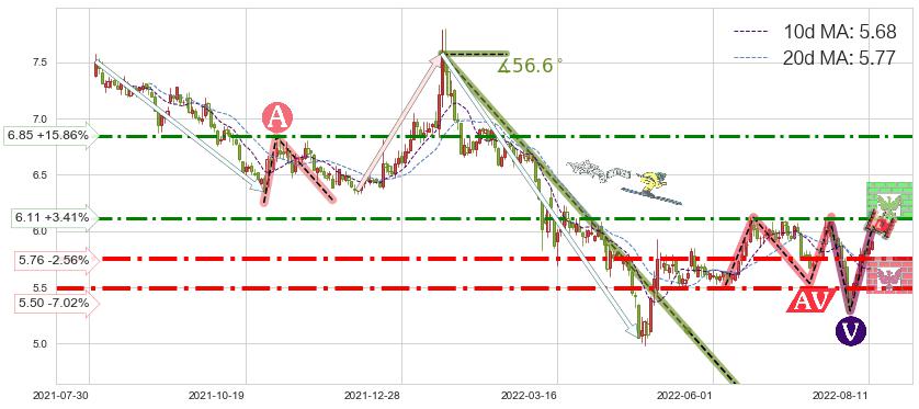 ➣ 2022-08-11到达第❷价格目标位置5.85