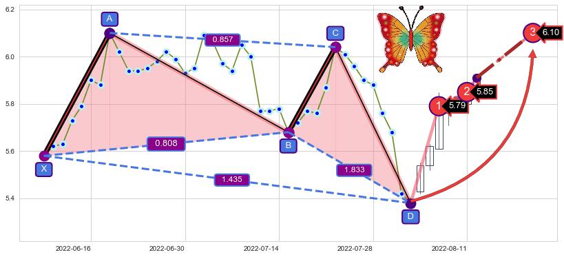 ➣ 已完成【蝴蝶】形态起点X: 2022-06-09, 终点D: 2022-08-03, 共40交易日