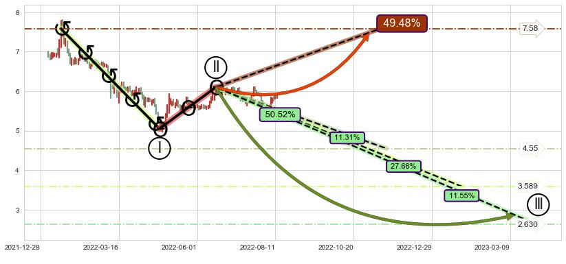 ➣ AI预测: 假定反转启动后, 第❸目标位置(2022-12-20, 5.05)
