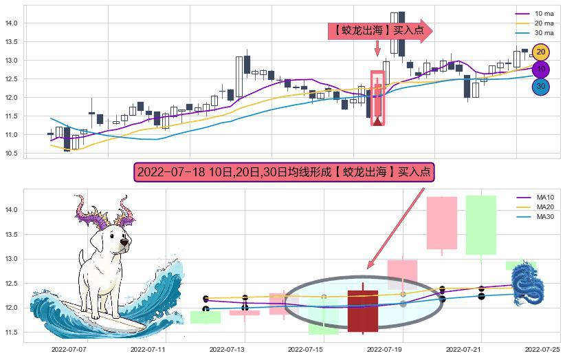 ⚀ 2022-07-18日显现 10日-20日-30日均线 【蛟龙出海】买入点 看多信号,后市看涨,买入