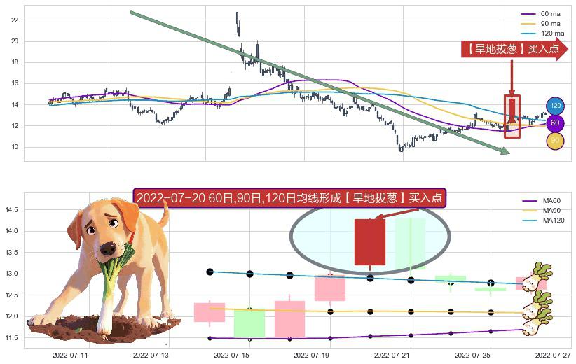 ⚀ 2022-07-20日显现 60日-90日-120日均线 【旱地拔葱】买入点 看多信号,后市看涨,买入