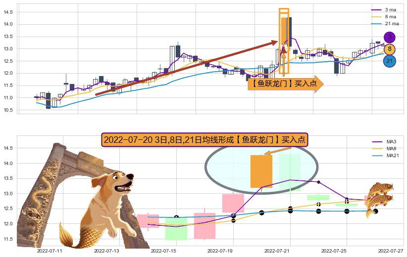 ⚀ 2022-07-20日显现 3日-8日-21日均线 【鱼跃龙门】买入点 看多信号,后市看涨,买入