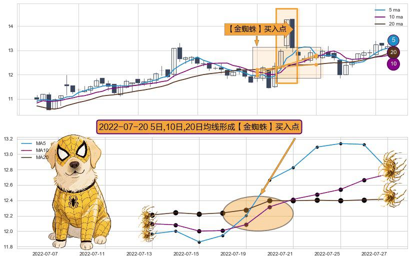 ⚀ 2022-07-20日显现 5日-10日-20日均线 【金蜘蛛】买入点 看多信号,后市看涨,买入