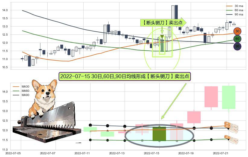 ⚀ 2022-07-15日显现 30日-60日-90日均线 【断头铡刀】卖出点 看空信号,后市看跌,卖出