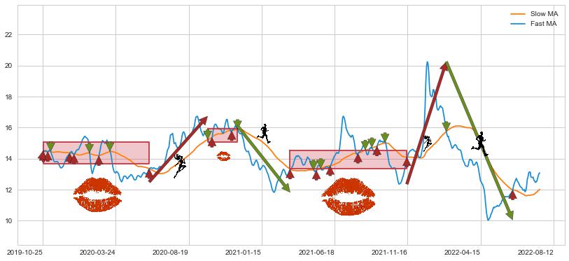 2022-02-07至2022-06-22 慢线与快线呈空头排列, 慢线与快线接触少,无缠绕