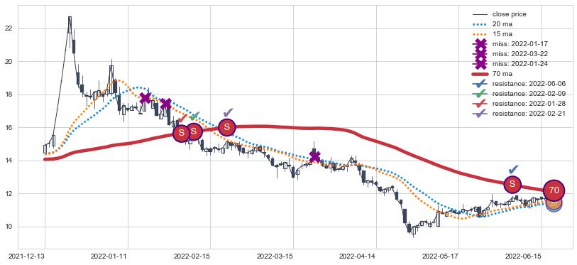 ⚂ 2022-07-20日开盘向上跳空高开+1.70%, 向上脱离整理形态,且收盘突破均线组合