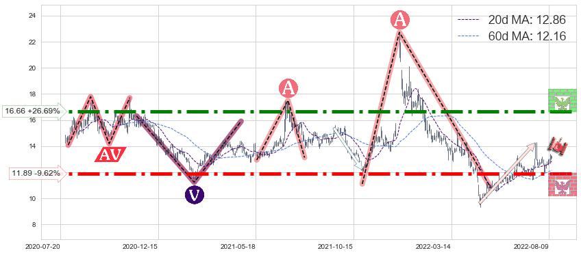 ♘ 阻力价格位16.66,可信任强度94.65%,距离最后交易2022-08-12形成的收盘价格13.15相差 +26.69%