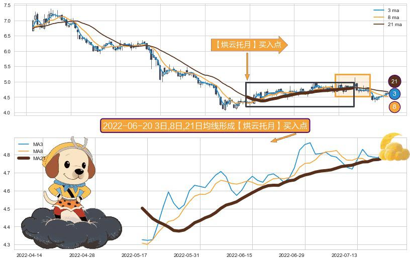 ⚀ 2022-05-16日-2022-07-21日显现 3日-8日-21日均线 【烘云托月】买入点 看多信号,后市看涨,买入