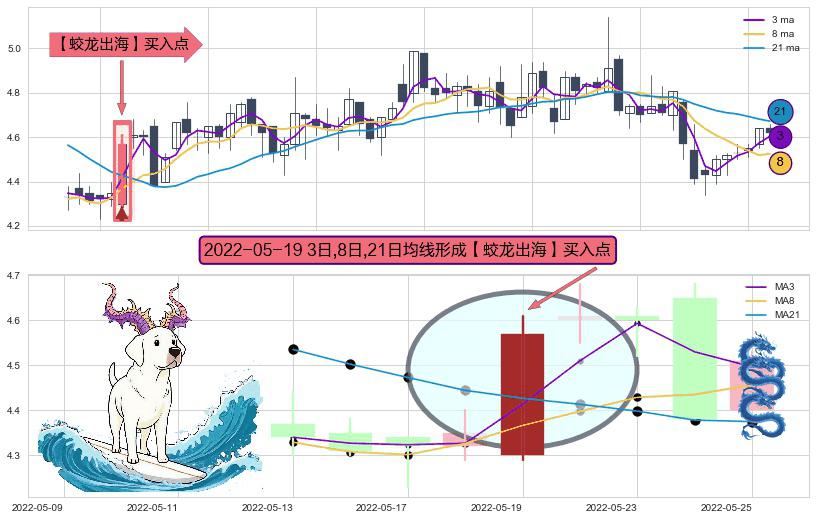 ⚀ 2022-05-19日显现 3日-8日-21日均线 【蛟龙出海】买入点 看多信号,后市看涨,买入