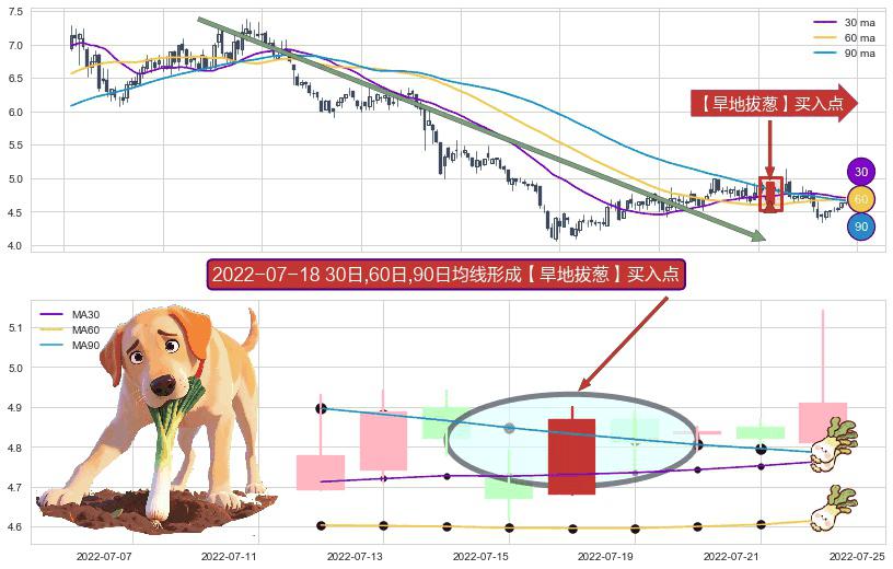 ⚀ 2022-07-18日显现 30日-60日-90日均线 【旱地拔葱】买入点 看多信号,后市看涨,买入