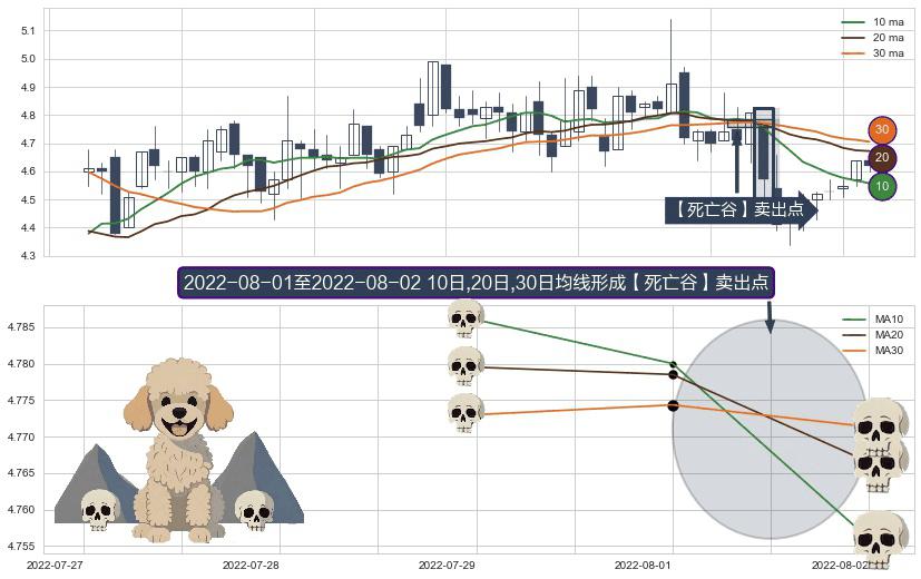 ⚀ 2022-08-02-日至2022-08-02-日显现 10日-20日-30日均线 【死亡谷】卖出点 看空信号,后市看跌,卖出