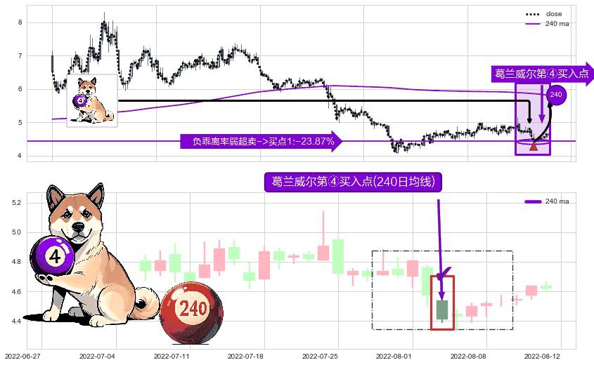 ⚀ 2022-08-03-日显现 葛兰威尔均线 240日均线 第④买入点 下降趋势均值回复的短线反弹信号,后市看涨,买进信号